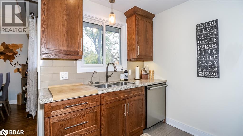 Step into this warm and inviting home located in the desirable east-end of Barrie. Boasting 3+1bedrooms, 2 full baths and a fully finished walkout basement, this home is a perfect blend of style, comfort and functionality - ideal for multi-generational living or those who crave space and flexibility. The heart of the home is an updated kitchen featuring custom cabinetry, granite countertops, gas stove, and a layout ideal for entertaining. The kitchen leads to the bright sun-filled living and dining area adorned with hardwood floors. The lower level features brand-new flooring, bright walkout to the backyard and kitchenette- perfect for a potential in-law suite, recreation area or guest space. Outside, enjoy a fully fenced, landscaped yard complete with a stone patio, and custom-built pavilion offering the ultimate outdoor retreat. A 200-amp electrical service with pony panel to service the backyard provides flexibility for future additions such as a hot tub or workshop. The single garage is surprisingly spacious with two oversized lofts for additional storage and the double drive is large enough to accommodate parking for four. Beautifully maintained and move-in ready, this exceptional property is perfect for families, multi-generational households, or anyone seeking quality and comfort in one incredible package. (id:64007)