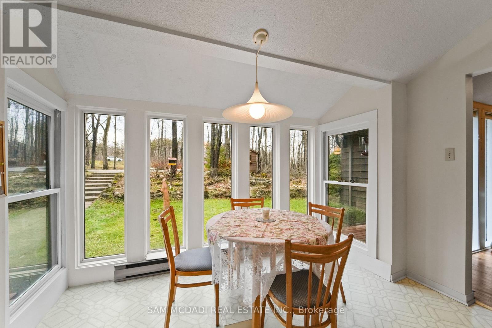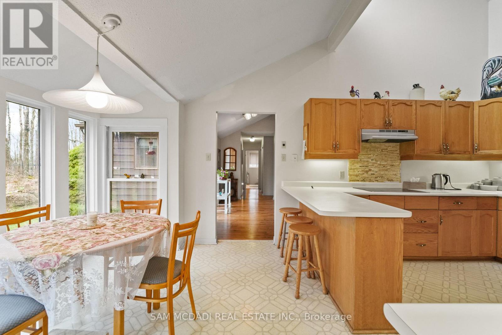 Nestled within the stunning Niagara Escarpment, just a stone's throw from Devils Glen Ski Club, "In The Woods" offers a delightful 3-bedroom, 2-bathroom residence that embraces both nature and creativity. Set on over 5 acres of lush, wooded land, this property provides a serene escape where you can truly relax. Inside, you'll discover a warm and inviting home filled with unique charm. The abundance of natural light makes every room feel open and welcoming. A key feature is the airy artist's studio, which is an extra space for the homeowner to get creative away from the mix of the house. With its separate entrance, this area could also serve perfectly as a home office. Next to the house, there's a versatile 18 x 30 workshop with power for tackling DIY projects, storage and more. "In The Woods" feels like a private sanctuary, with the peaceful Escarpment as your neighbour. The home is in roughly the middle of the lot so plenty of trees and land on the property at the back and sides! (id:64007)