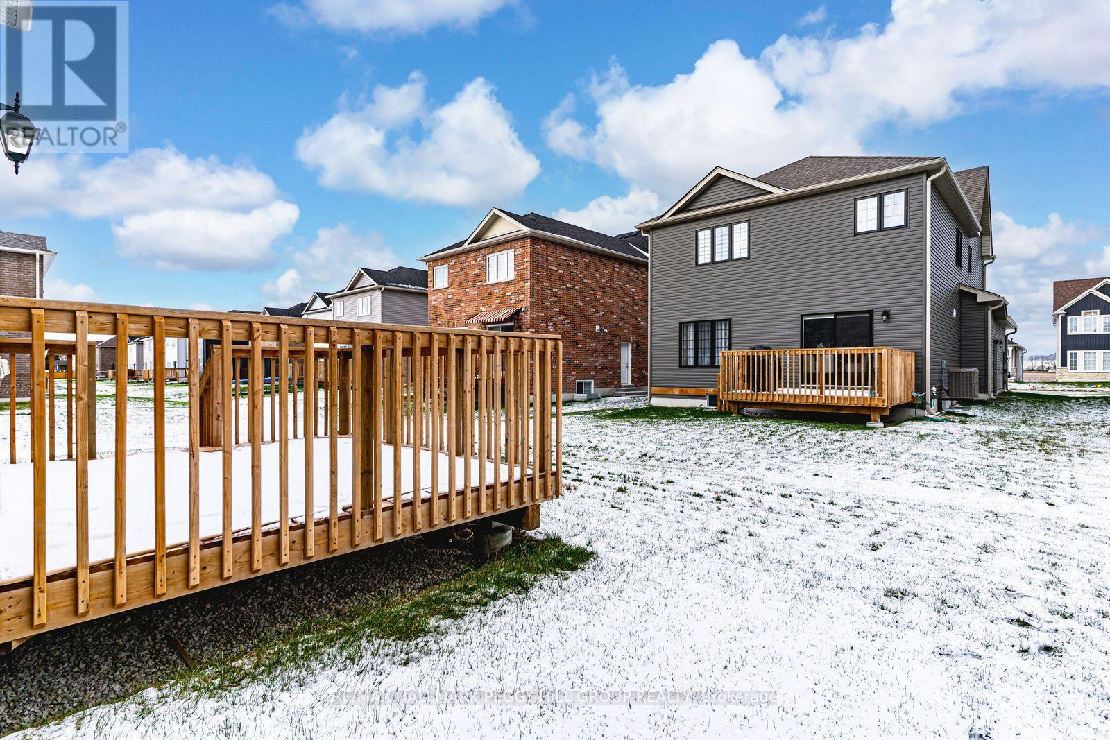 2,200+ SQ FT FAMILY HOME WITH A SEPARATE SIDE BASEMENT ENTRANCE & IN-LAW POTENTIAL INVITING YOU TO CREATE YOUR VISION! If you have ever wished a builder home came with personality, potential and a little main character energy, this one is ready to earn a spot on your Pinterest boards once you work your magic. The all-brick exterior sets the tone the moment you arrive, paired with a paved driveway, parking for 4 and a double-car garage with inside entry that brings everyday convenience. This MacPherson-Built North Star Model Home showcases a bright, open-concept main level with over 2,200 square feet of above grade living space, 9-foot ceilings, and generous sightlines that make the home feel even larger. A gas fireplace anchors the living area with a warm, relaxed atmosphere, and the kitchen adds its own charm with white cabinetry, a Calacatta marble-look countertop, and stainless steel appliances. The dining area opens to a back deck made for lazy mornings and leisurely evenings, while the main-floor laundry keeps daily routines pleasantly simple. Upstairs, the primary bedroom offers a true retreat with a 5-piece ensuite and two walk-in closets that elevate storage to a sense of luxury. Families will appreciate the flexible bedroom layout, and anyone thinking ahead will be drawn to the expansive lower level with a side entrance, three egress windows and rough-ins for a kitchen, bathroom and laundry to support excellent in-law capability. Set in a new Stayner development with quick access to Wasaga Beach, Angus, Barrie and Collingwood, the neighbourhood offers a friendly energy with dining, shopping, schools, the arena and the Ecopark all close enough to weave naturally into your week. This is the kind of #HomeToStay that makes it easy to picture the life you can build here. (id:64007)