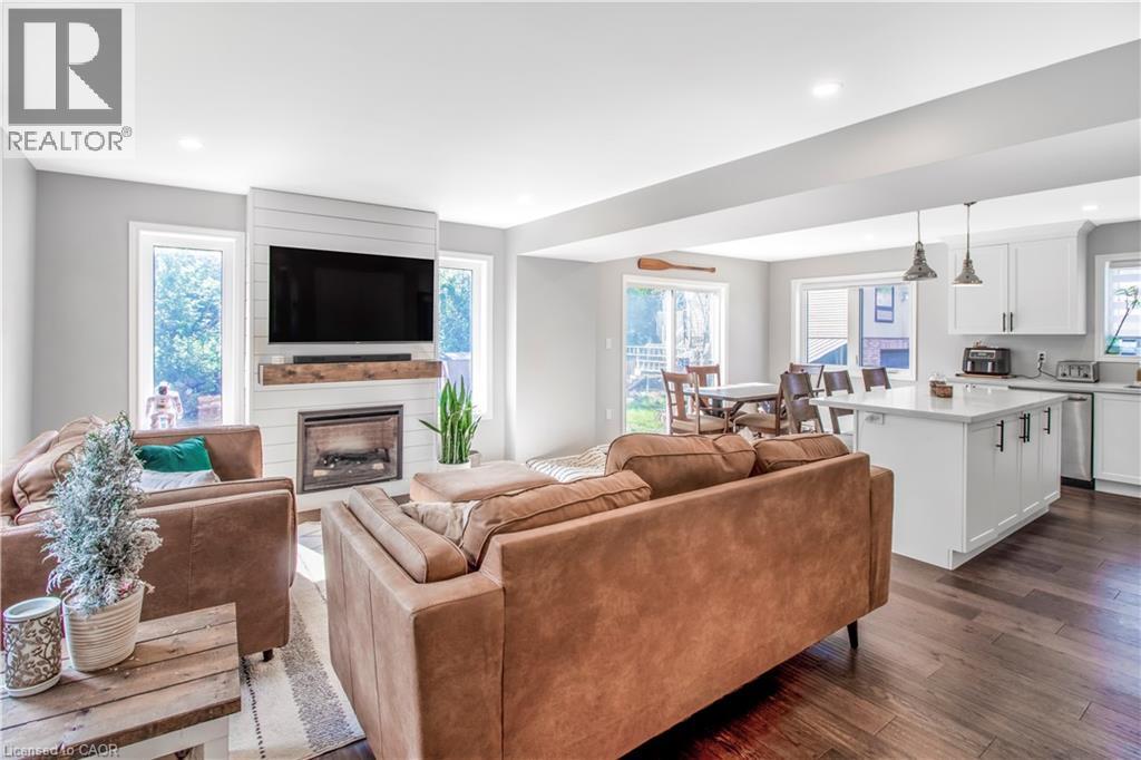 Pride of ownership shines throughout this beautifully maintained, carpet-free 3-bedroom, 2.5-bath home offering 1,500 sq ft of comfortable living space. Thoughtfully upgraded with LED pot lights, an HRV fresh air system, and a whole-home water filtration setup with sediment, iron, and softener filters. The bright, open-concept main floor features engineered hardwood, a cozy electric fireplace in the living room, and a centre-island kitchen perfect for casual meals or entertaining. A double door pantry provides great storage, and the large front porch adds welcoming curb appeal. Upstairs, the spacious primary bedroom includes its own ensuite, plus sunset views over the lake right from your window. Additional bedrooms offer ensuite privilege. The unfinished basement is a blank canvas, ready for your personal touch—home office, gym, or recreation room. Outside, enjoy a backyard patio and space to relax. The attached garage and double-wide driveway fit up to 7 cars, making parking effortless. Located on a quiet road for added peace and privacy, this move-in-ready home is the perfect blend of comfort, style, and value. (id:64007)