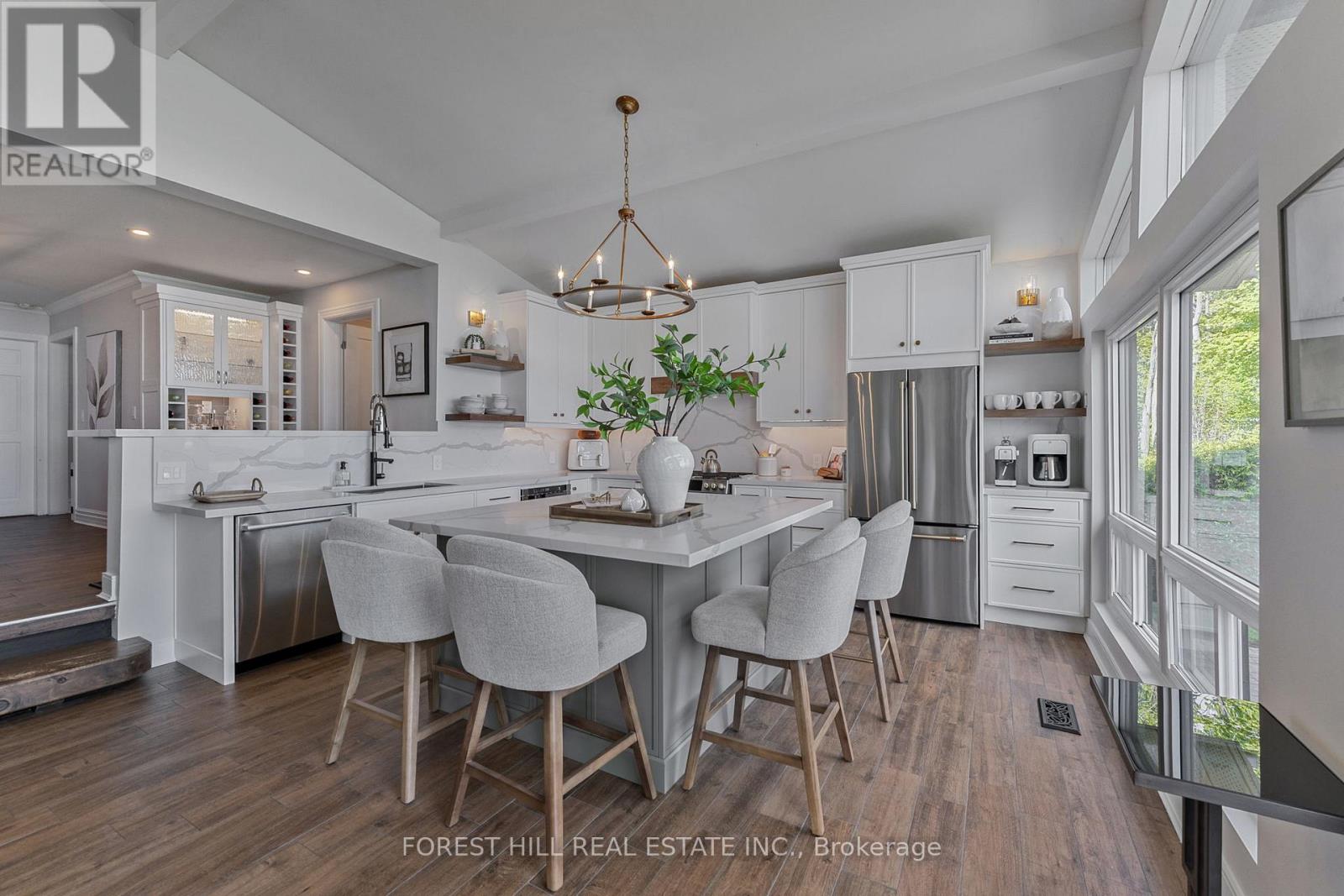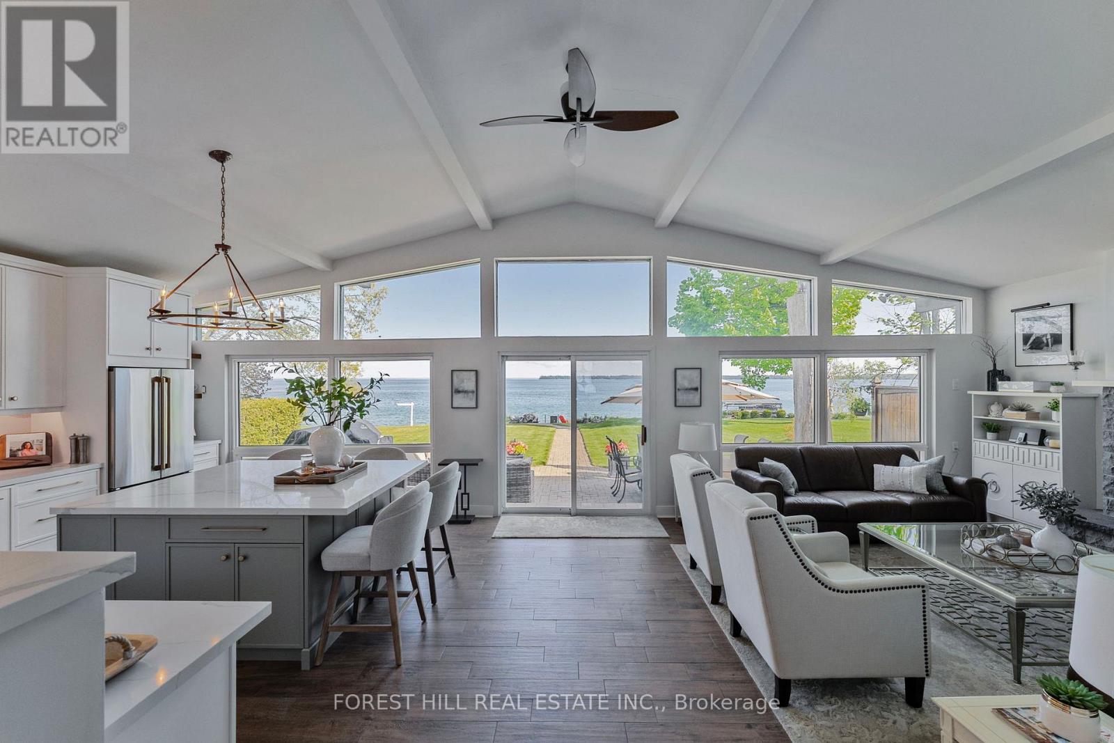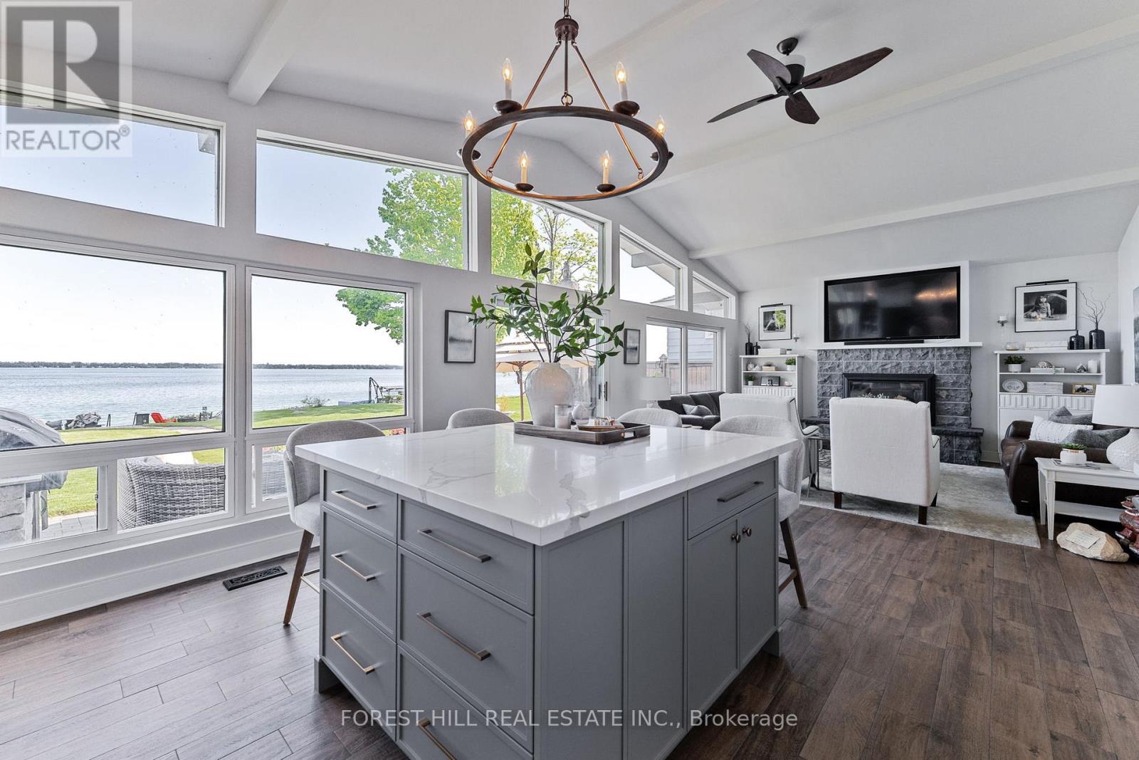 Client RemarksWelcome to your Lakefront Dream Home, nestled on Greenwood Forest Road in one of Oro Medontes sought after neighborhoods. Luxury living meets a relaxed lakeside lifestyle. This meticulously updated waterfront bungalow on a quiet street offers breathtaking, open concept unobstructed views across to Big Bay Point. Enjoy spectacular sunrises from this 50 x 259 picturesque lot with over 3,200 sq. ft. of finished living space with a custom detached 3 bay 30 x 24 1.5 -storey garage, heated with natural gas. The show-stopping custom kitchen filled with natural light and vaulted ceilings is an entertainers dream. Finished with quartz counters, quartz backsplash, a striking oversized island with GE Cafe appliances with built-in bar/servery. This home features 3 bedrooms on the main floor with one 3 piece full bathroom and one 2 piece powder room. In the fully finished lower level, you will find 1 bedroom with ensuite , walk in shower ,heated floors and large family room with gas fireplace, custom built office space and high speed internet perfect for those that work from home. Outside youll find a concrete pier at the waters edge with cantilever dock, outdoor kitchen with dual Napoleon gas and charcoal BBQs, lush landscaping, interlock patios with walkway to the lake and fire pit seating area with a stunning view. New Lennox furnace and AC (2022), new Generac (2023), 200 AMP service. New septic system (2018), new water softener system with iron filter (2022).Ideal location for a short commute, 1 hr to Toronto, 10 minutes to Barrie/Orillia and a short boat ride to the prestigious Friday Harbour. Property has an invisible dog fence. (id:64007)