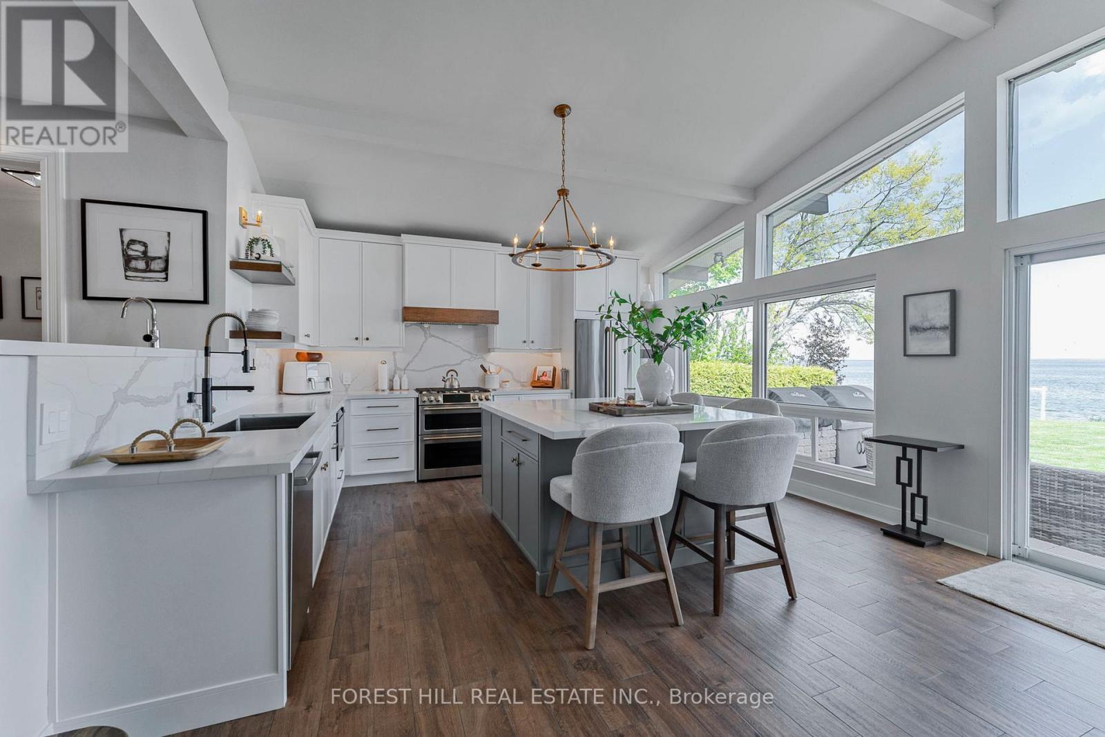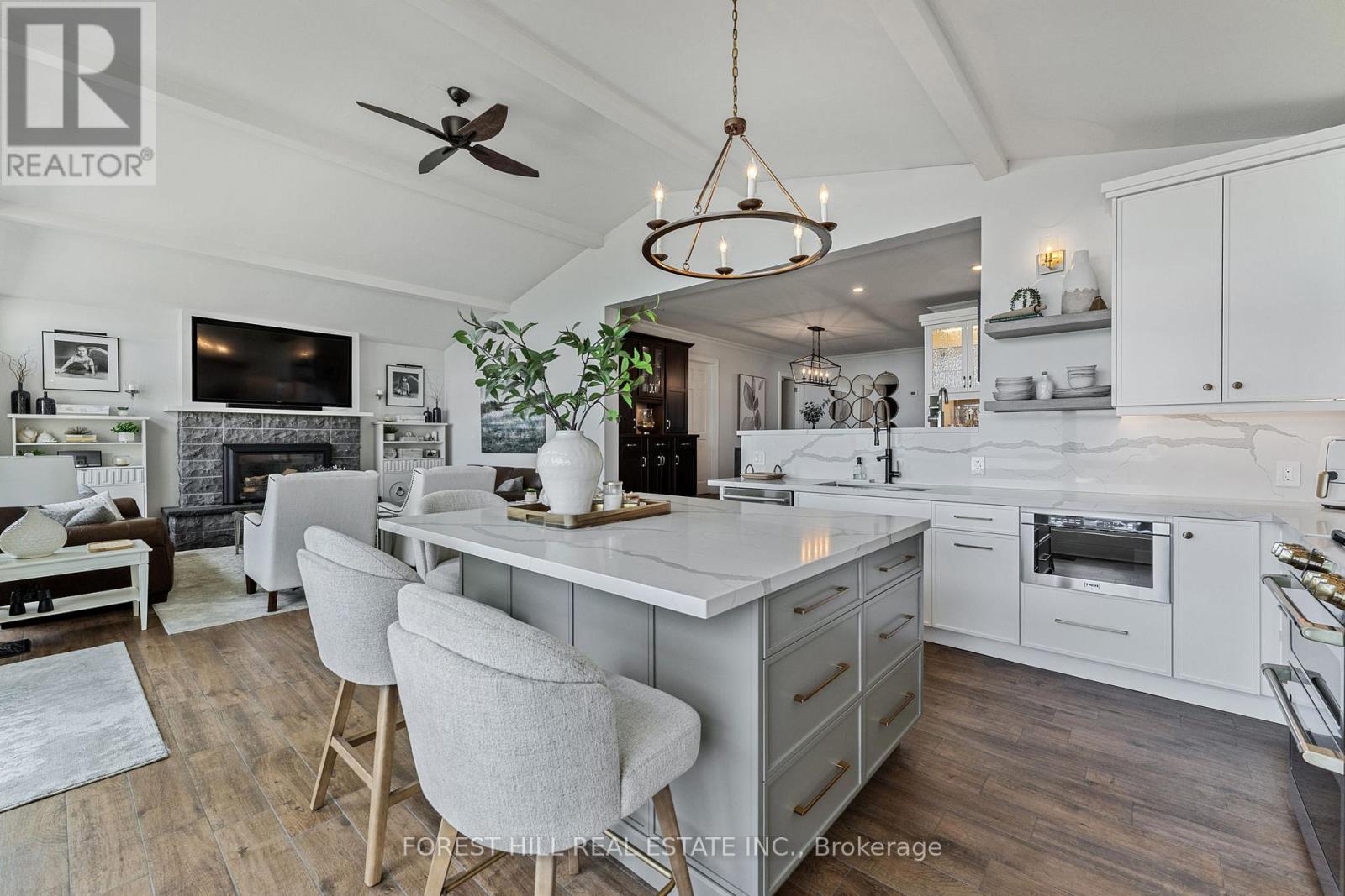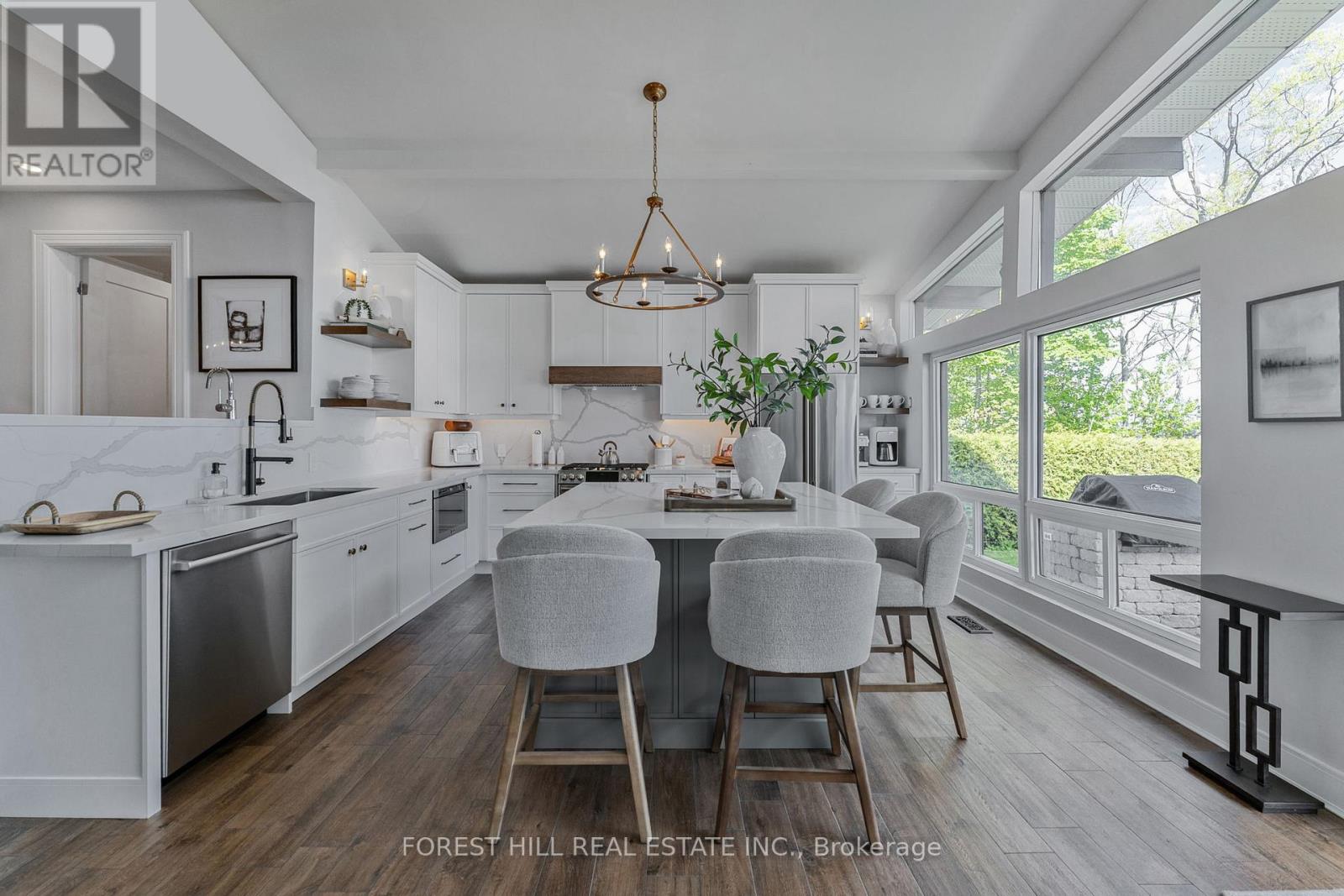 Client RemarksWelcome to your Lakefront Dream Home, nestled on Greenwood Forest Road in one of Oro Medontes sought after neighborhoods. Luxury living meets a relaxed lakeside lifestyle. This meticulously updated waterfront bungalow on a quiet street offers breathtaking, open concept unobstructed views across to Big Bay Point. Enjoy spectacular sunrises from this 50 x 259 picturesque lot with over 3,200 sq. ft. of finished living space with a custom detached 3 bay 30 x 24 1.5 -storey garage, heated with natural gas. The show-stopping custom kitchen filled with natural light and vaulted ceilings is an entertainers dream. Finished with quartz counters, quartz backsplash, a striking oversized island with GE Cafe appliances with built-in bar/servery. This home features 3 bedrooms on the main floor with one 3 piece full bathroom and one 2 piece powder room. In the fully finished lower level, you will find 1 bedroom with ensuite , walk in shower ,heated floors and large family room with gas fireplace, custom built office space and high speed internet perfect for those that work from home. Outside youll find a concrete pier at the waters edge with cantilever dock, outdoor kitchen with dual Napoleon gas and charcoal BBQs, lush landscaping, interlock patios with walkway to the lake and fire pit seating area with a stunning view. New Lennox furnace and AC (2022), new Generac (2023), 200 AMP service. New septic system (2018), new water softener system with iron filter (2022).Ideal location for a short commute, 1 hr to Toronto, 10 minutes to Barrie/Orillia and a short boat ride to the prestigious Friday Harbour. Property has an invisible dog fence. (id:64007)