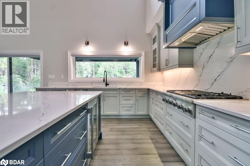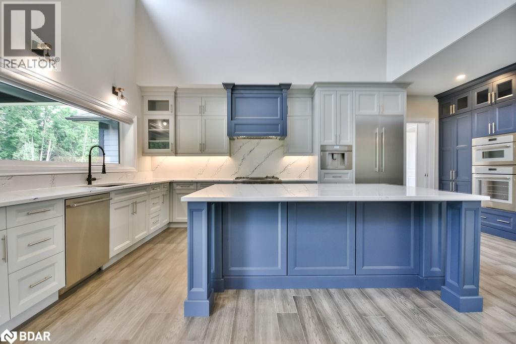 One-of-a-Kind in Braestone Estate Home with Legal Coach Apartment! Welcome to 4 Clydesdale Court, a custom-designed estate-style home perfectly positioned on a quiet court. Backing onto green space, this stunning residence blends timeless craftsmanship with upscale finishes, offering a luxurious lifestyle minutes from Barrie and Orillia. The open-concept main floor features soaring vaulted ceilings, oversized windows, and a gas fireplace. Walk out to a covered balcony with composite decking and glass railings perfect for serene views or entertaining. The chef-inspired kitchen includes granite counters, pantry, custom cabinetry, and $75k in built-in Thermador appliances. The main floor primary suite is a true retreat with a spa-like 5-piece ensuite, soaker tub, walk-in shower, and heated floors. Additional main floor highlights include a formal dining room, a den (ideal office or bedroom), a stylish powder room, and laundry. Upstairs, two large bedrooms each have 3-piece ensuites and walk-out access to a shared balcony. A major highlight is the finished triple car garage with private entry to a bright, self-contained legal coach apartment complete with kitchen rough in, bathroom, and laundry -ideal for family, guests, or rental income. The full-height unfinished basement with large windows offers excellent future potential for additional bedrooms, rec-room or home gym - the possibilities are endless. Enjoy the best of Braestone award-winning for its trails, equestrian features, farm-to-table charm, and vibrant community. Close to skiing, golf, Bass Lake, and major commuter routes, this rare offering combines privacy, elegance, and lifestyle in Oro-Medonte's most sought-after neighborhood. (id:64007)
