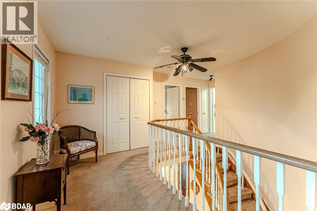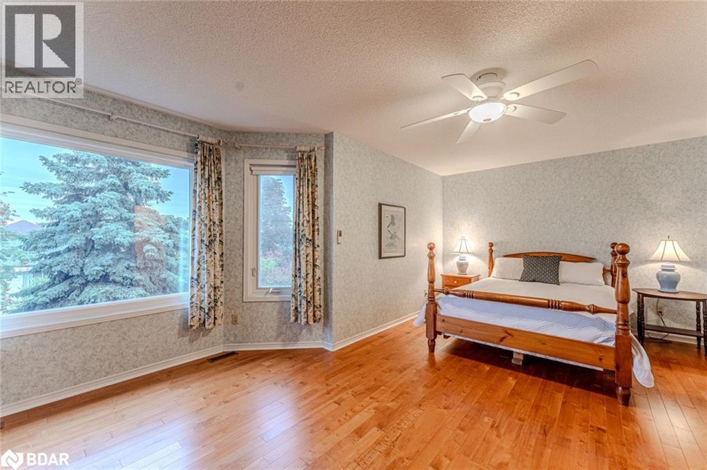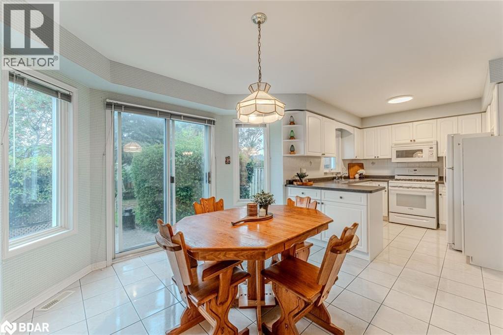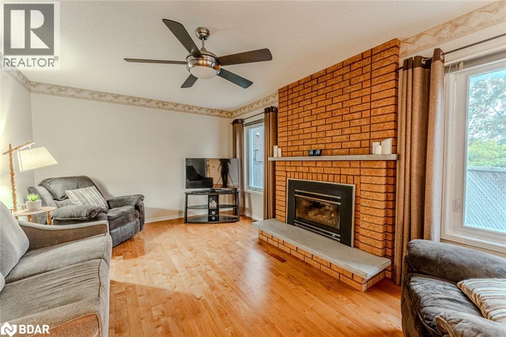 WELL-MAINTAINED ALL-BRICK TWO-STOREY WITH OVER 2,800 FINISHED SQ FT IN AN ESTABLISHED NORTH-END NEIGHBOURHOOD! Tucked within one of Barrie’s established north-end neighbourhoods, this beautiful all-brick two-storey home makes a lasting impression with its grandeur exterior, double front doors, manicured gardens and a double garage that adds to its curb appeal. Offering over 2,800 square feet of finished space, the interior is warm and inviting, with thoughtful details throughout. The bright kitchen features timeless white cabinetry, generous counter space and a breakfast area with a walkout to the patio, creating an easy connection to outdoor living. The combined living and dining room showcases a large bay window that fills the space with natural light, while the family room’s gas fireplace offers a cozy spot to gather. Hardwood flooring adds warmth and character to both spaces, and the main floor laundry with garage access adds everyday functionality. Upstairs, four spacious bedrooms include a primary suite with double doors, a walk-in closet and a 4-piece ensuite, while the three additional bedrooms share a main 4-piece bath. The basement extends the living area with a generous rec room and an additional gas fireplace, perfect for family movie nights or entertaining guests. Step outside to enjoy a private backyard with a patio, mature trees, hedging, a shed and a privacy fence that together create a quiet outdoor escape. Big-ticket updates have already been completed, allowing you to move in and enjoy this beautiful home with confidence! (id:64007)