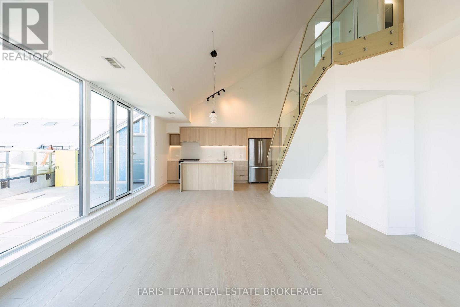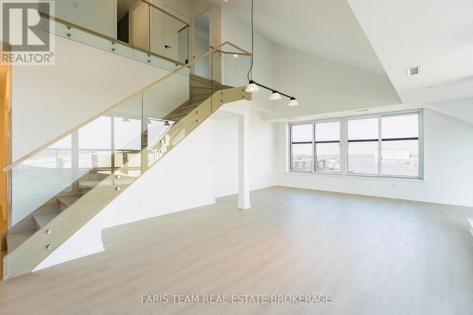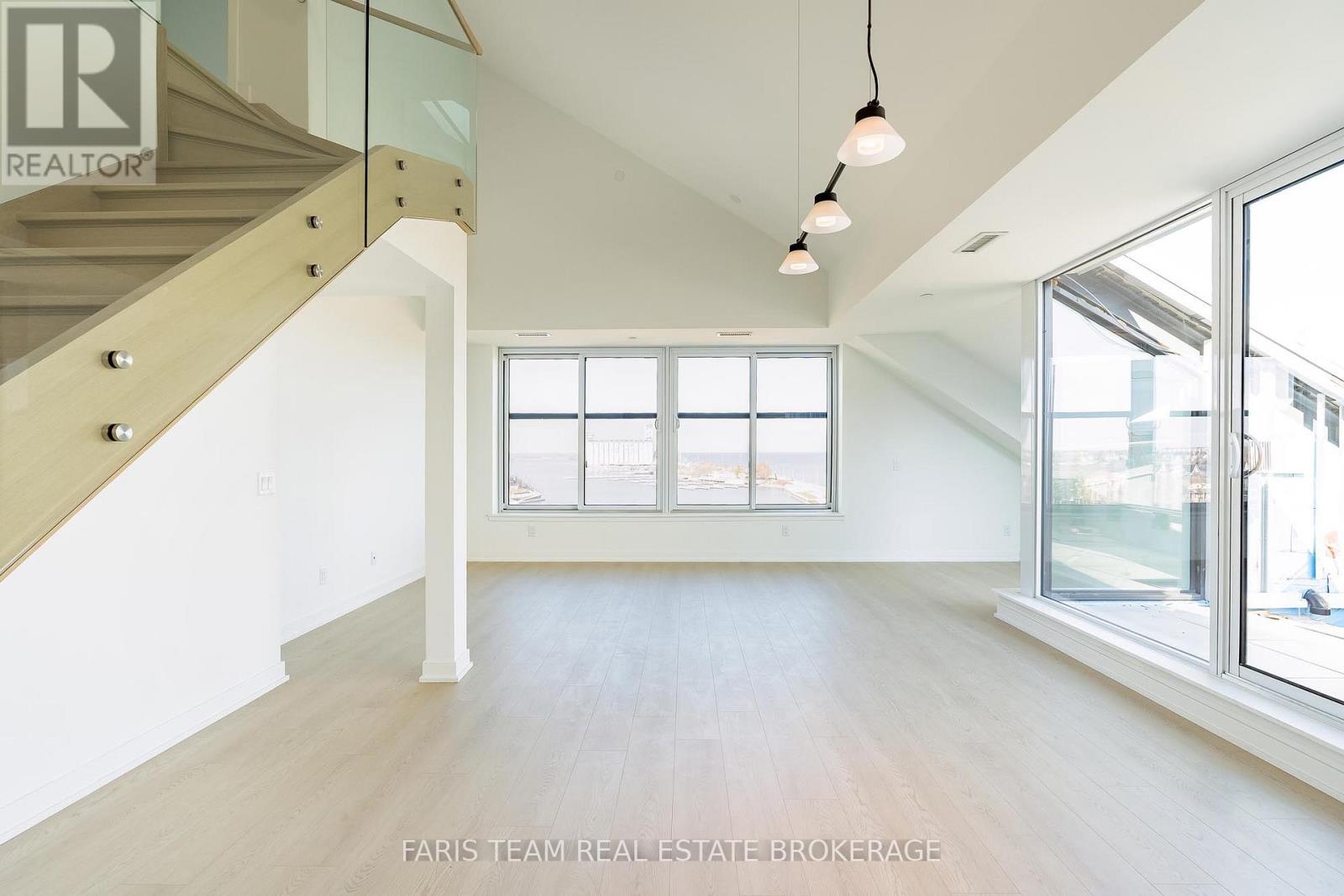 Top 5 Reasons You Will Love This Condo: 1) Discover the most impressive penthouse offering in the entire building, a rare 1,523 square feet, three bedroom, two and a half bathroom corner suite that delivers extraordinary space, elevated design, and incredible privacy at the very top 2) Marvel at breathtaking vistas from every principal room and from the expansive private terrace, giving you a seamless indoor-outdoor lifestyle framed by stunning, ever-changing scenery 3) Enjoy a truly exceptional outdoor experience on your oversized terrace, complete with a gas barbeque hookup, an infrared heater, and captivating views of Georgian Bay, perfect for year-round entertaining or unwinding in total serenity 4) Appreciate everyday convenience with two premium parking spaces, including one equipped with an EV charger, paired with a dedicated storage locker to keep everything organized and accessible 5) Live comfortably with bright open-concept living spaces that mix luxury, functionality, and modern comfort in perfect harmony. 1,523 fin.sq.ft. *Please note some images have been virtually staged to show the potential of the condo. (id:64007)