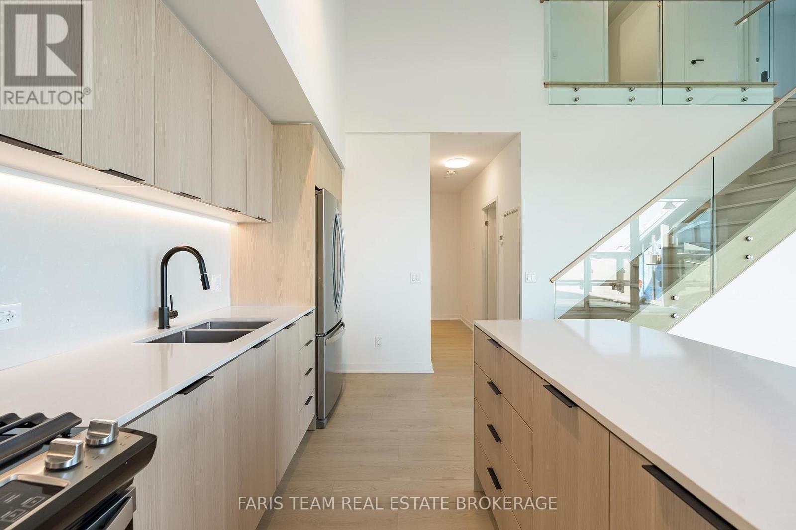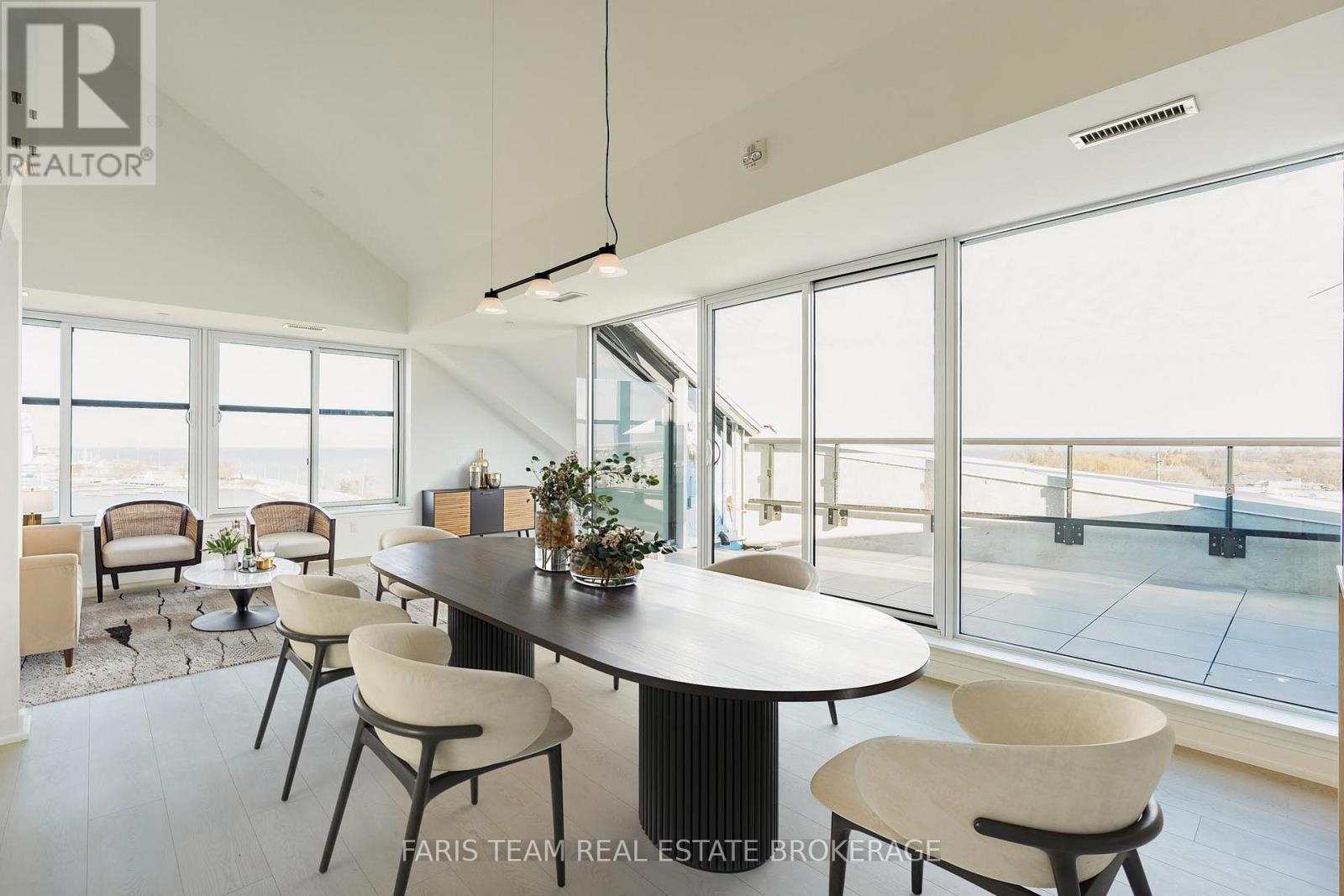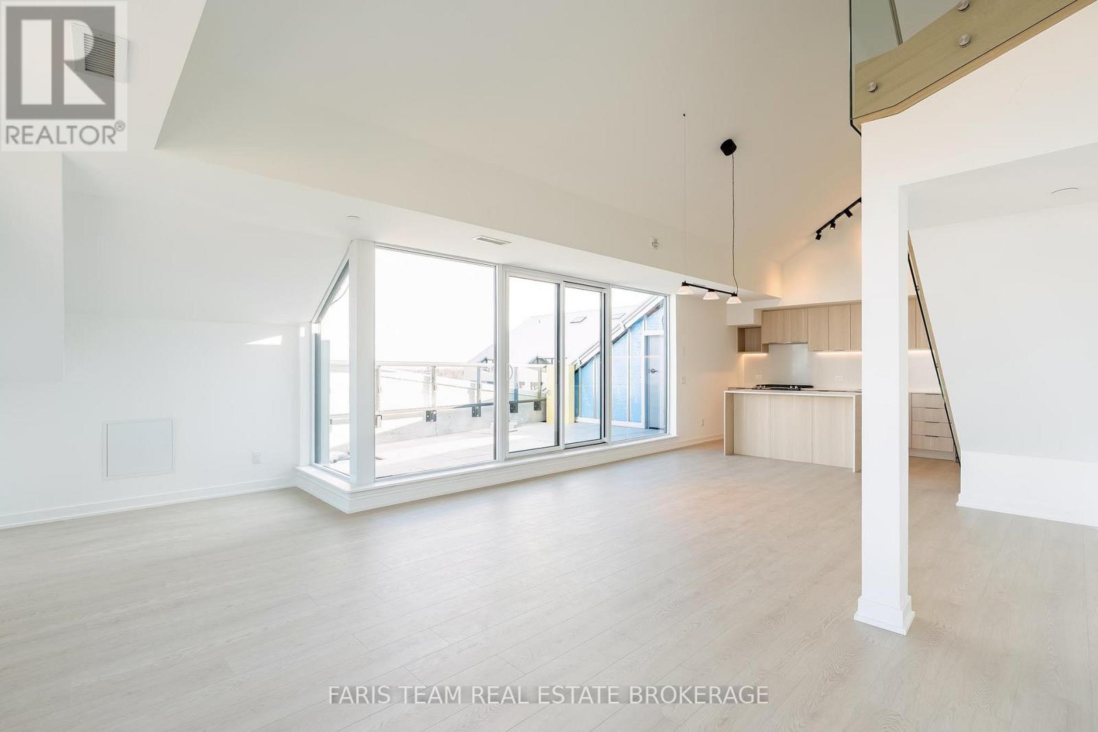 Top 5 Reasons You Will Love This Condo: 1) Discover the most impressive penthouse offering in the entire building, a rare 1,523 square feet, three bedroom, two and a half bathroom corner suite that delivers extraordinary space, elevated design, and incredible privacy at the very top 2) Marvel at breathtaking vistas from every principal room and from the expansive private terrace, giving you a seamless indoor-outdoor lifestyle framed by stunning, ever-changing scenery 3) Enjoy a truly exceptional outdoor experience on your oversized terrace, complete with a gas barbeque hookup, an infrared heater, and captivating views of Georgian Bay, perfect for year-round entertaining or unwinding in total serenity 4) Appreciate everyday convenience with two premium parking spaces, including one equipped with an EV charger, paired with a dedicated storage locker to keep everything organized and accessible 5) Live comfortably with bright open-concept living spaces that mix luxury, functionality, and modern comfort in perfect harmony. 1,523 fin.sq.ft. *Please note some images have been virtually staged to show the potential of the condo. (id:64007)