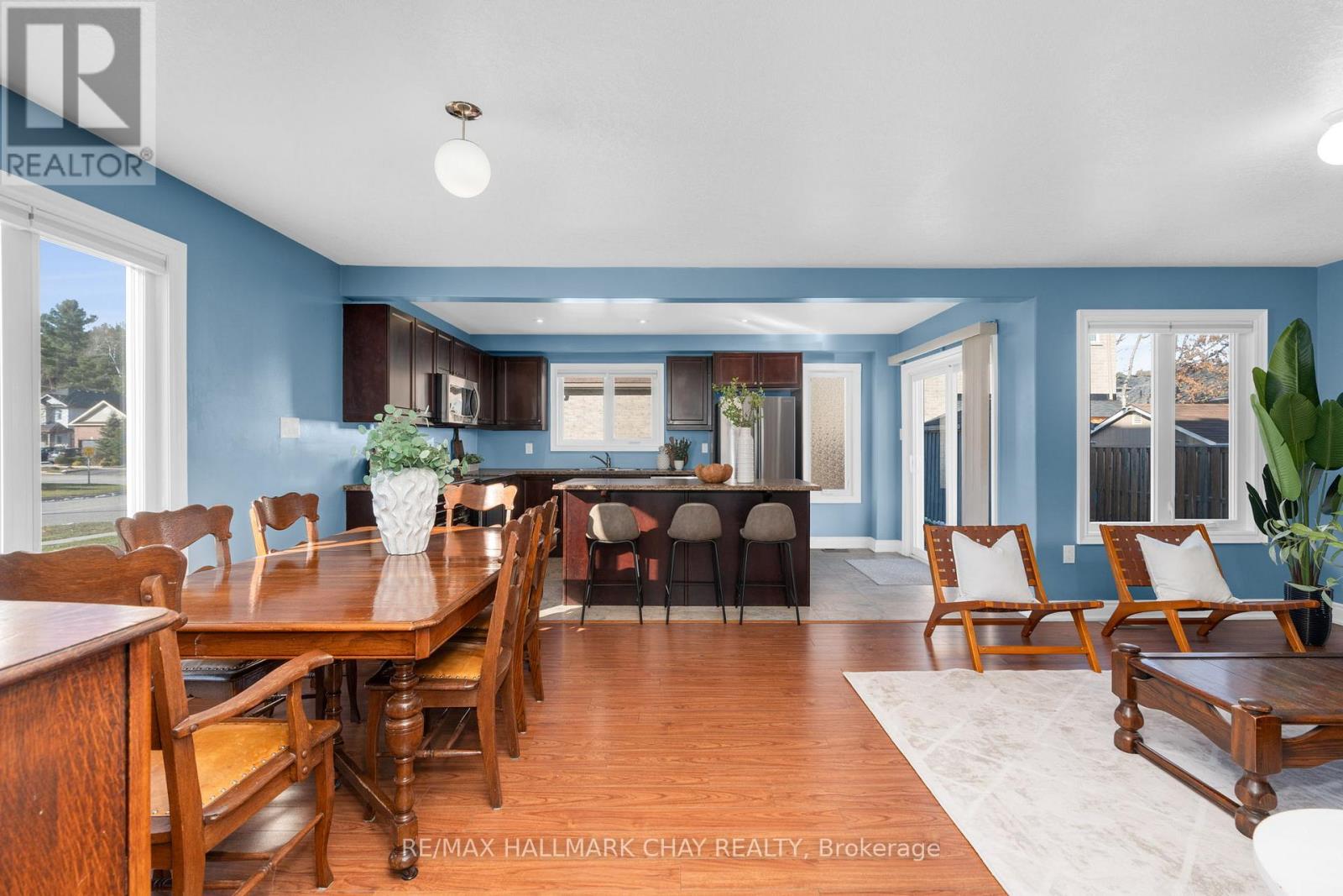 Move-in ready home on a quiet dead-end street! 9 Mancini offers more than 1,800 sq ft of finished living space in a bright, family friendly layout. The open-concept, carpet-free main floor features a stylish kitchen with stainless steel appliances and a large island with seating-perfect for busy mornings and entertaining. The adjoining dining area flows into a spacious living room and walkout to the backyard. Upstairs, you'll find three generous sized bedrooms, including a primary suite with a walk-in closet and a 4-piece ensuite complete with a relaxing soaker tub. The finished basement offers a rec room for additional living space and includes a rough-in for a future bathroom. Additional highlights include central air, inside entry to the double car garage, paved driveway, covered front porch, and low property taxes. Located minutes to CFB Borden and just 15 minutes to Barrie and Alliston. Flexible closing available. (id:64007)