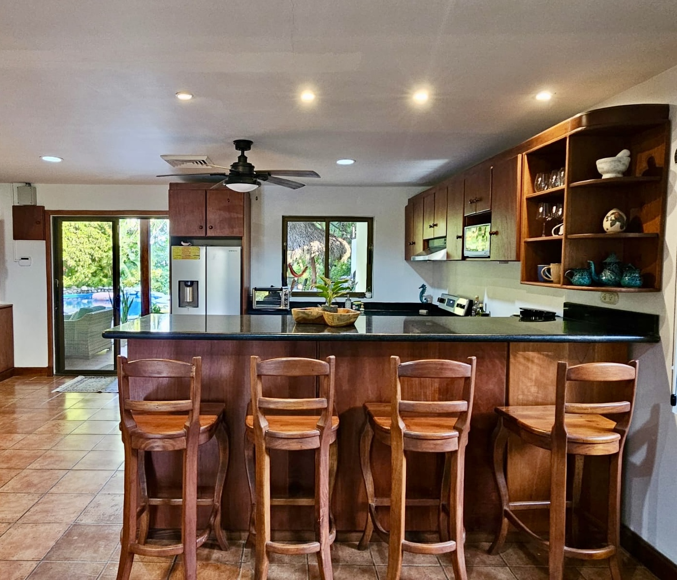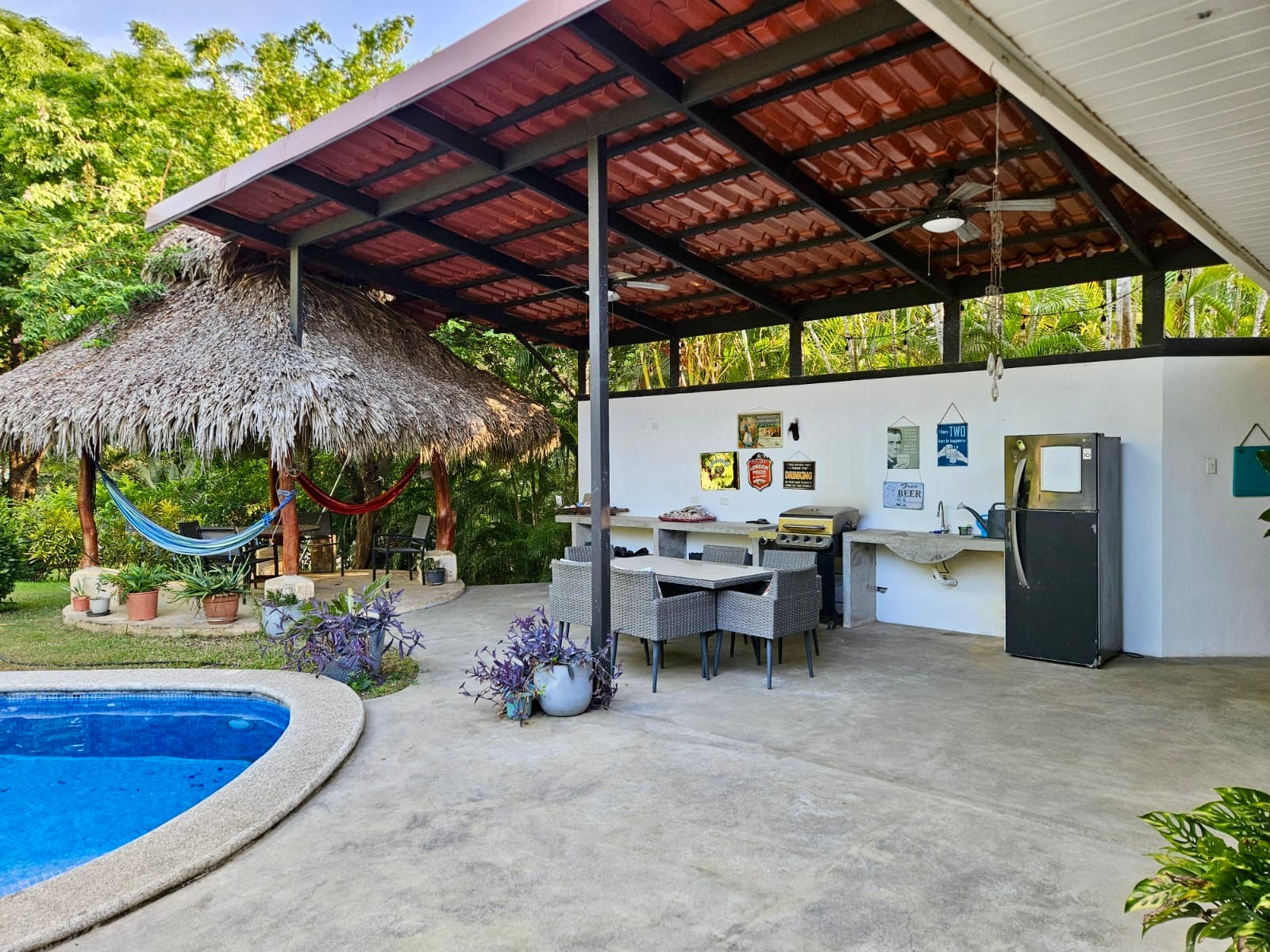 Step outside and enjoy a thoughtfully designed backyard built for entertaining and relaxation. Take a dip in the pool, unwind in the gazebo with hammocks, or gather with friends on the covered patio with ample seating. The outdoor rancho includes a large prep counter, sink, BBQ, and fridge—everything you need to host with ease. A beautifully landscaped outdoor shower, surrounded by lush flora, enhances the tropical experience.